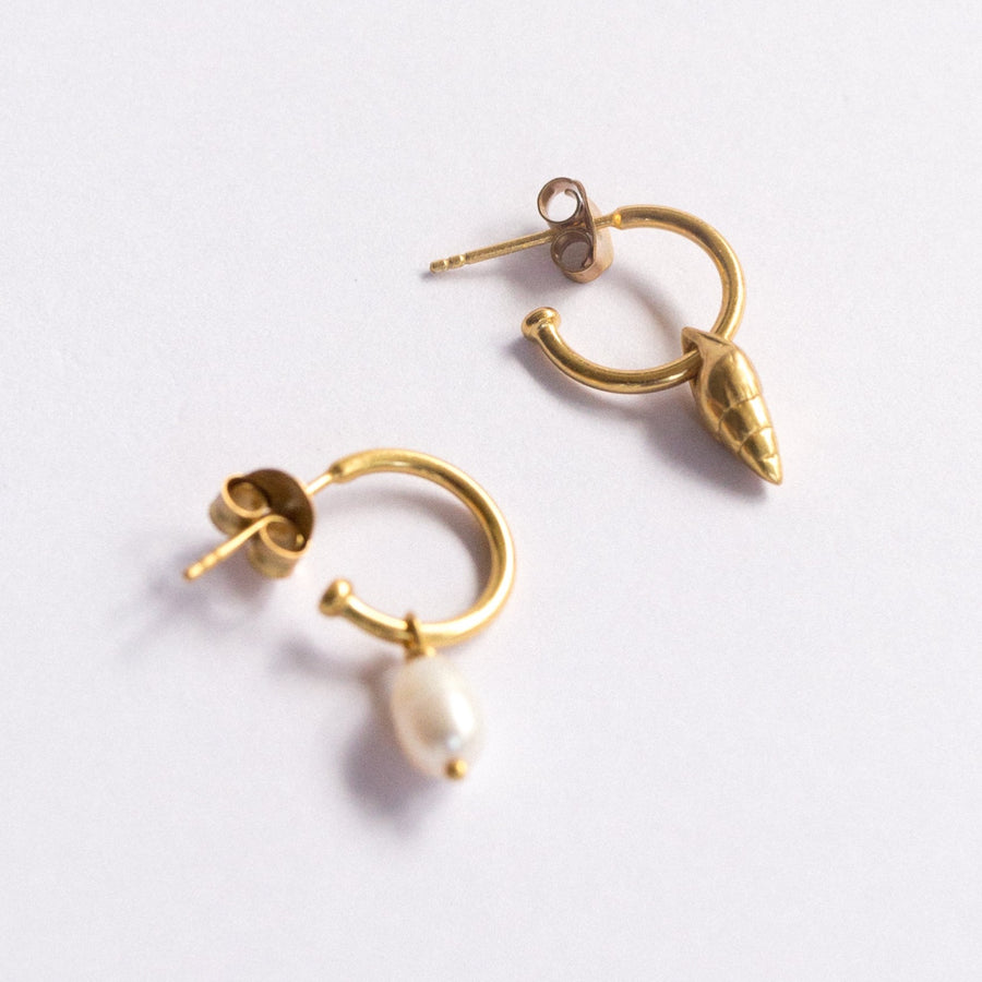 A breeze of summer, captured in earrings. The Tamarama Hoops feature one cast shell and one freshwater pearl — designed to wear as a pair or mix and match with your other favorites. Removable pendants mean you’re actually getting two earrings in one. Minimal, elegant, and perfect for effortless stacking.