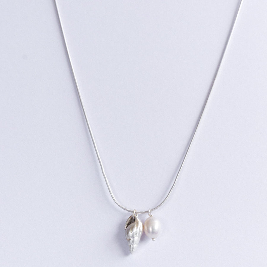 Carry the sea with you. This delicate necklace features a natural shell pendant and a freshwater pearl, handcrafted for a matte-finished, timeless look — perfect for summer days or nights.