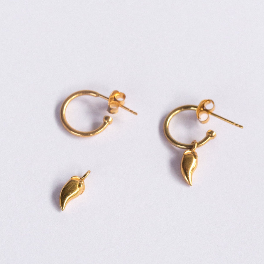 A minimal hoop with a bold attitude. The spicy chili pendants are removable, giving you two earrings in one — perfect for layering, stacking, or rocking solo with a playful twist.