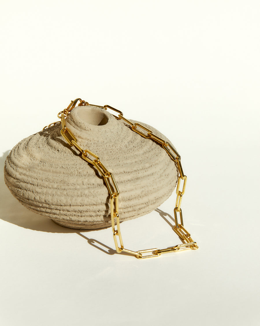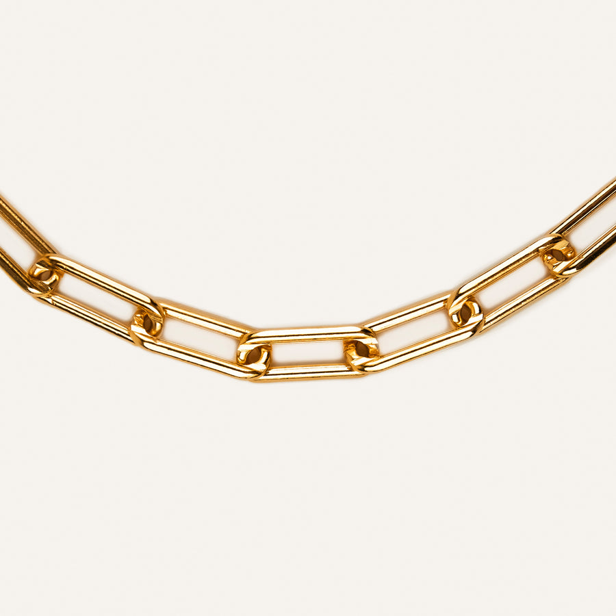 Chain type: Chunky Paperclip Chain. Chain lenght: Total lenght 46 cm. Adjustable in any lenght. Chain thickness: Handmade chain of 8 mm Finishing: Shiny Polish Weight: 3 g