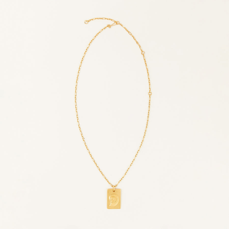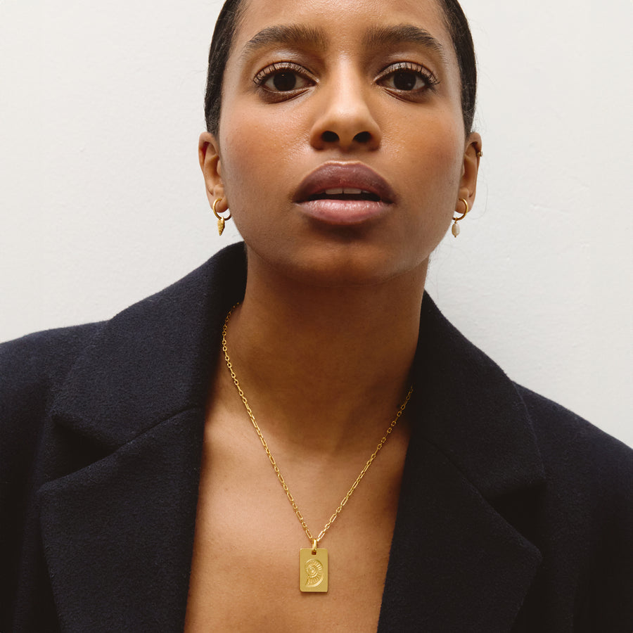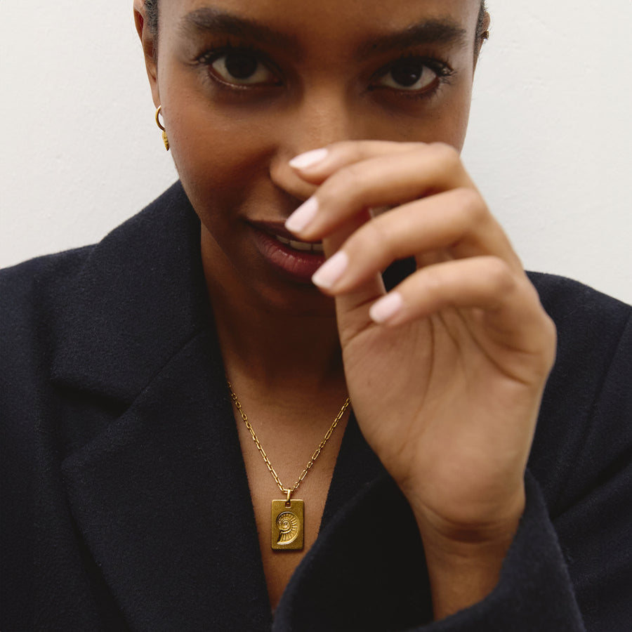 An icon of the collection. The Spiral-Shell pendant reflects one of nature’s most powerful forms — the logarithmic spiral. Precise, organic, and endlessly recurring. Designed as a reminder that life and change don’t move in straight lines. They evolve, return, and expand — just like the spiral itself. Finished in matte 18k gold-plated brass and paired with a delicate handmade chain. Subtle, intentional, and easy to wear every day.